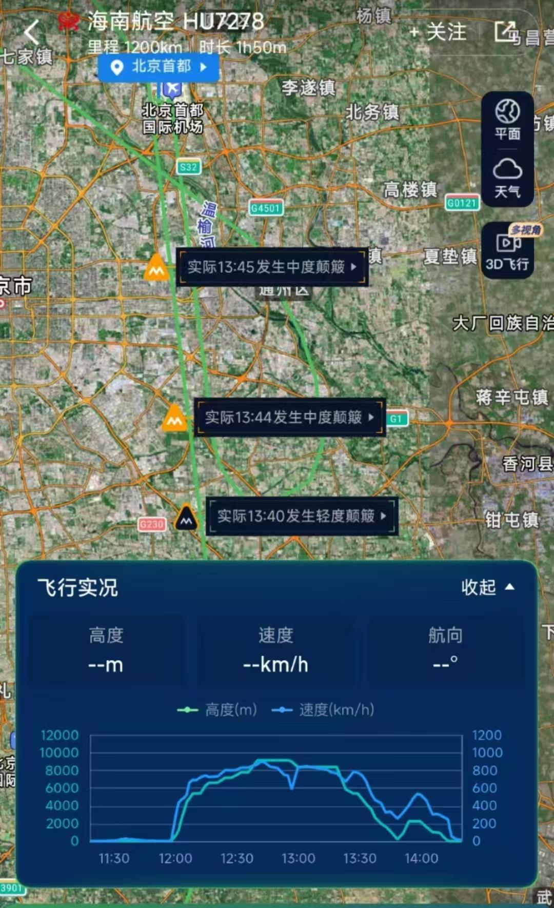 海南航空从杭州飞往北京的航班落地后复飞。乘